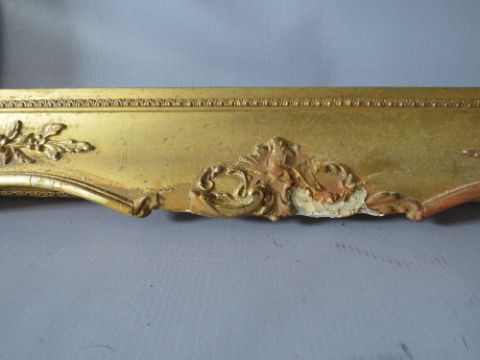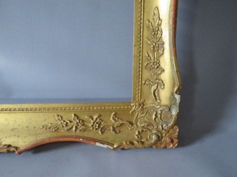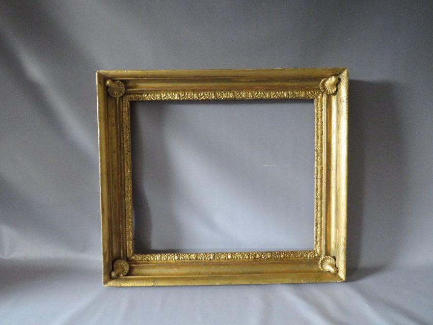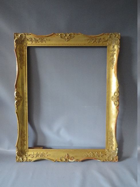 A LATE 19TH / EARLY 20TH CENTURY GOLD SWEPT FRAME, frame W 8 cm, frame rebate 68.5 x 52.5 cm