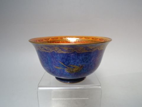 A WEDGWOOD LUSTRE FOOTED BOWL WITH HUMMING BIRD DECORATION, Dia. 10 cm