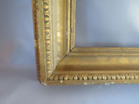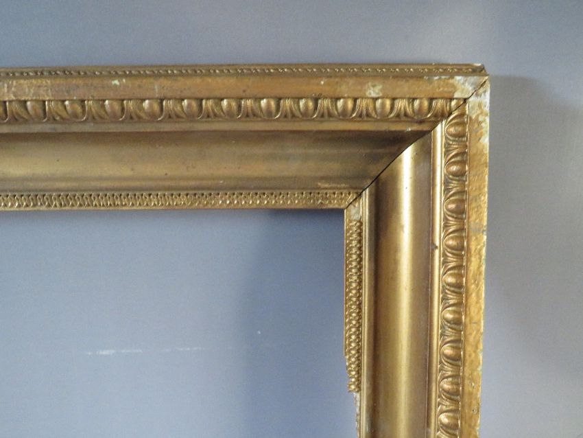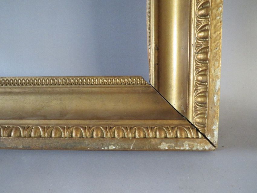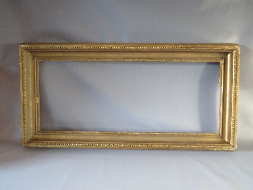A 19TH CENTURY GOLD FRAME WITH EGG AND DART DESIGN TO OUTER EDGE, frame W 10 cm, frame rebate 102 x 41 cm, S/D