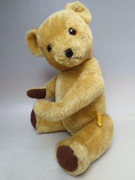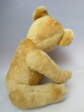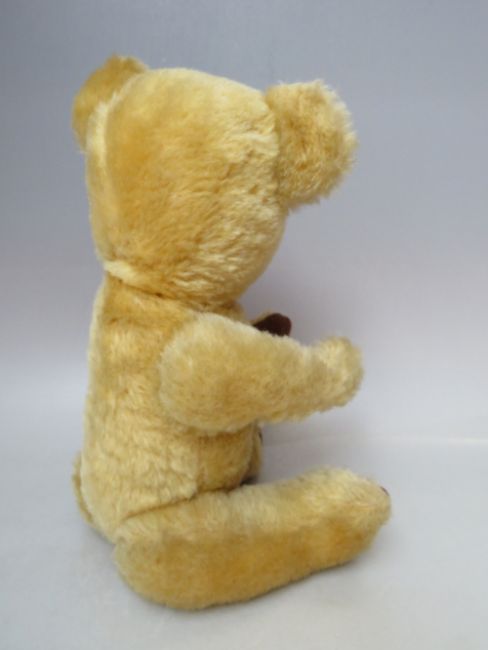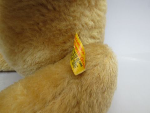 TWO VINTAGE DEANS GOLDEN MOHAIR TEDDY BEARS, both fully jointed, with glass eyes and stitched nose and mouth, the largest with working growler, H 46 cm, the smaller bear with bell in ear, H 37 cm (2)