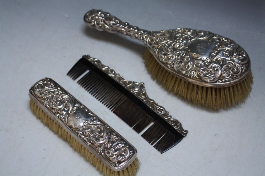 THREE HALLMARKED SILVER BRUSHES AND COMBS, various dates and makers, L 24.5 cm