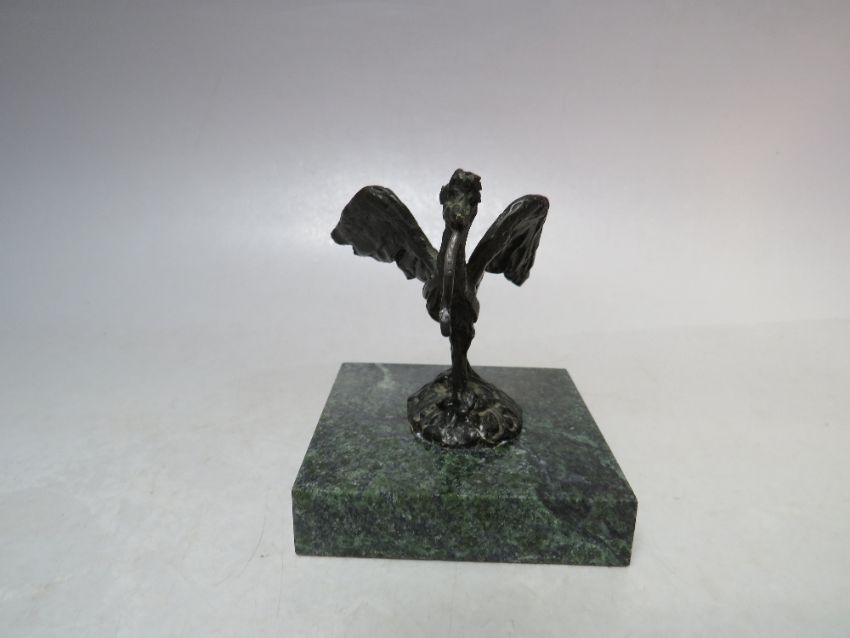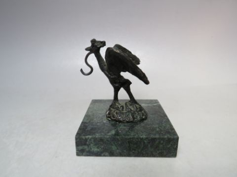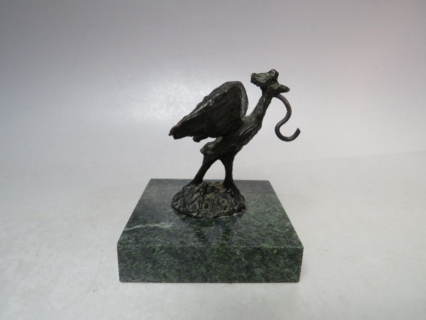 A BRONZE BIRD AND GREEN MARBLE POCKET WATCH STAND, H 9 cm