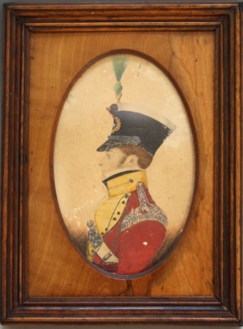 (XIX). Oval portrait miniature study of an officer in full dress, indistinctly signed middle to lower left, watercolour on paper, framed and glazed, 11 x 7 cm