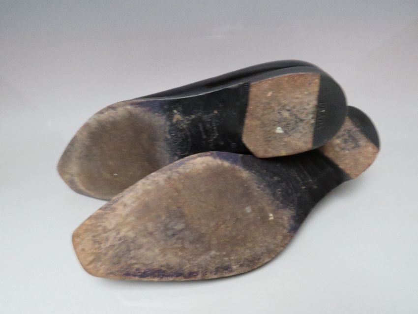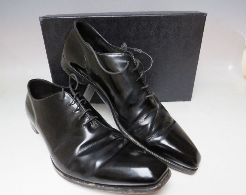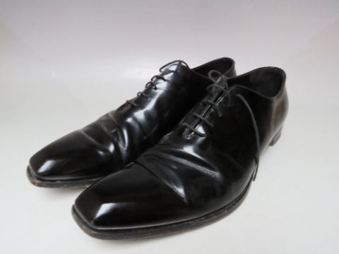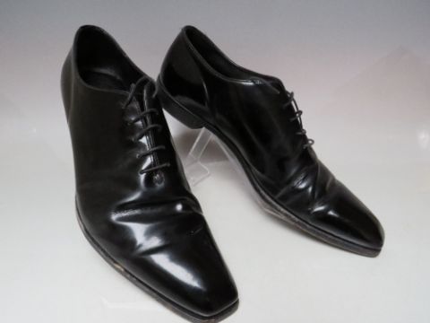 A PAIR OF PRADA BLACK LEATHER SHOES SIZE 10