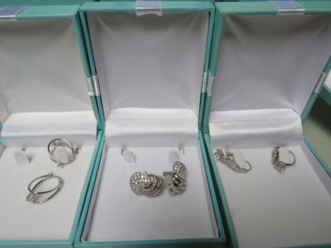 A COLLECTION OF MAINLY QVC DIAMONIQUE SILVER AND CUBIC ZIRCONIA JEWELLERY ITEMS, comprising seven pairs of earrings, three pendant necklaces and two bracelets (12)