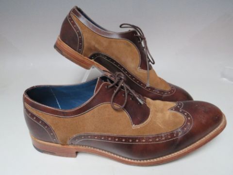 A PAIR OF BARKER TAN SUEDE AND BROWN LEATHER BROGUE STYLE SHOES SIZE 10