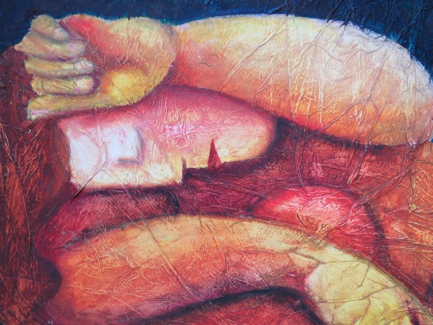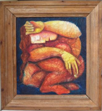 NIKKI McKAY (XX). A modernist female nude study, unsigned, see studio label verso, oil on board, framed, 49 x 44 cm
