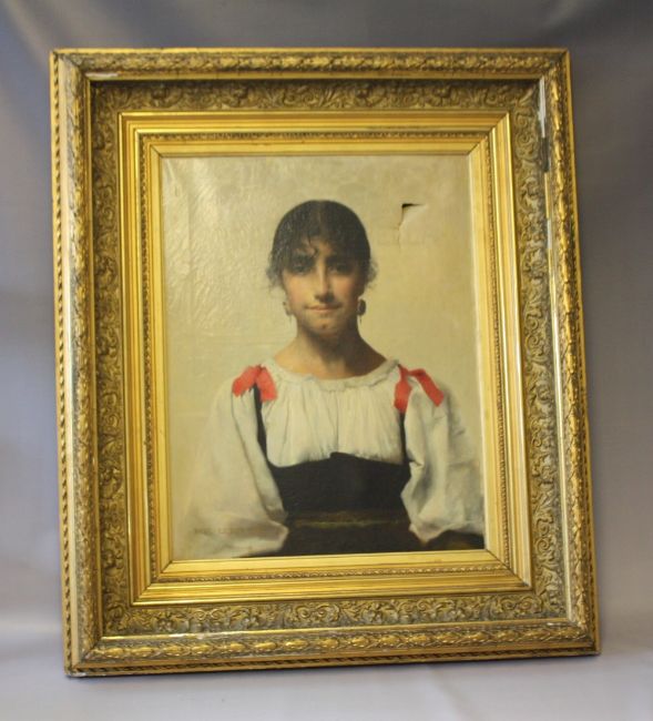 PAUL ALEXANDRE ALFRED LEROY (1860-1942). French school, half length portrait study of a young peasant girl, signed and dated 1886 lower left, oil on canvas, framed, 67 x 52 cm