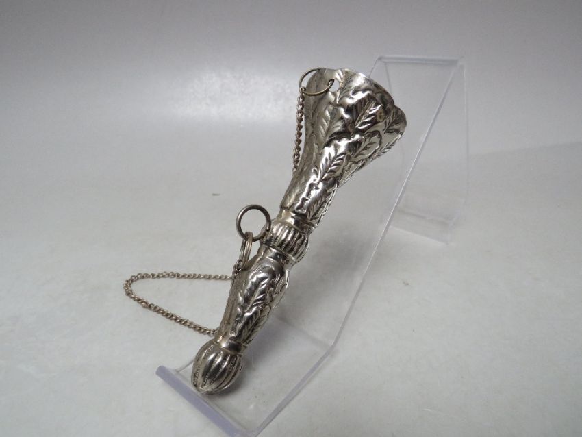A WHITE METAL POSY HOLDER, approx weight 34g, H 11 cm