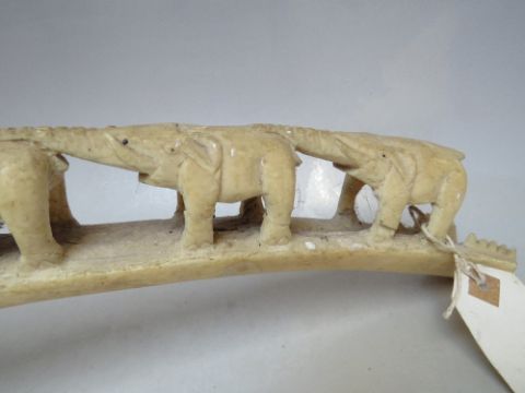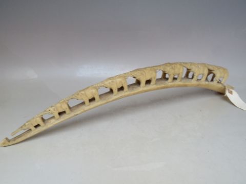 AN ANTIQUE IVORY CARVED TUSK ELEPHANT TRAIN, circa 1900 / 1910, L 54 cm