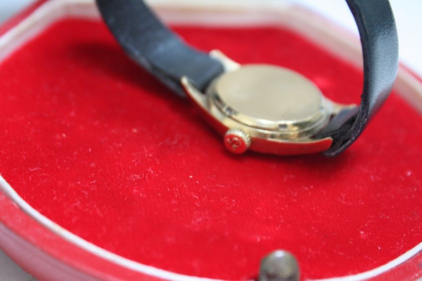 OMEGA - A LADIES 18 CT GOLD SEAMASTER WRIST WATCH, in an Omega box, W 2.25 cm