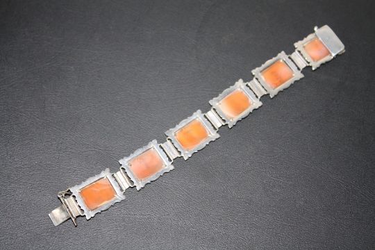 AN UNUSUAL CAMEO PANEL BRACELET, set in white metal stamped 800, approx weight 21.2g, L 18 cm