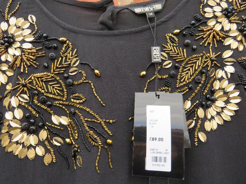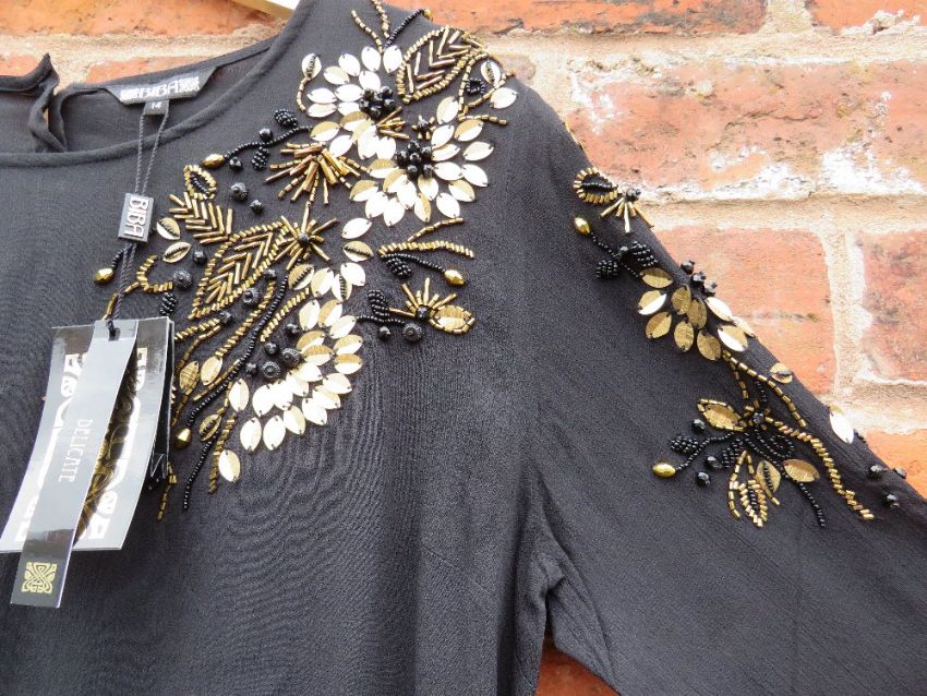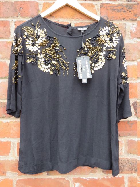 A NEW WITH TAGS BLACK EMBELLISHED BIBA TOP, size 14