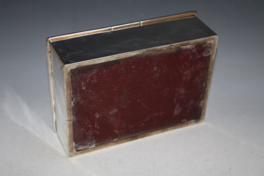 A HALLMARKED SILVER DOUBLE SIDED TABLE TOP CIGAR BOX - LONDON 1920, with central carry handle and one side having a central divider, W 23.25 cm
