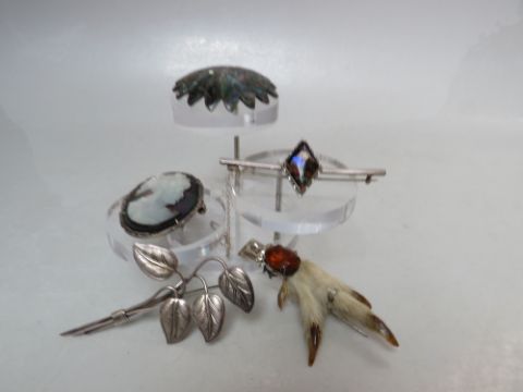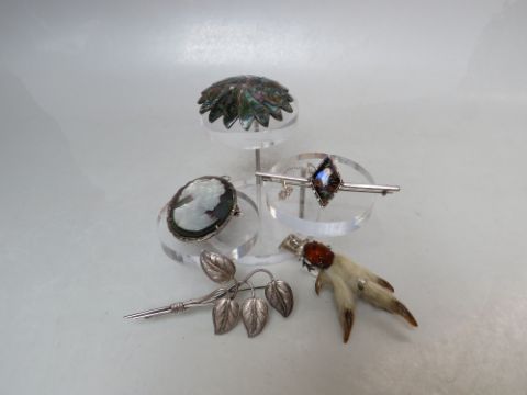 A COLLECTION OF VINTAGE SILVER BROOCHES, various styles and periods to include a hallmarked and Sterling silver examples (5)
