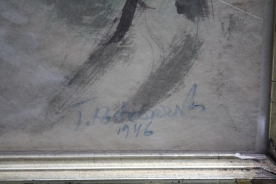 (XX). Russian school, monotone head and shoulder study of a young woman, indistinctly signed and dated 1946 lower right, watercolour, framed and glazed, 33 x 27 cm