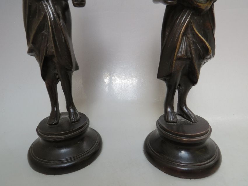 A PAIR OF 20TH CENTURY BRONZED METAL MALE AND FEMALE FIGURATIVE CANDLE HOLDERS, H 25 cm