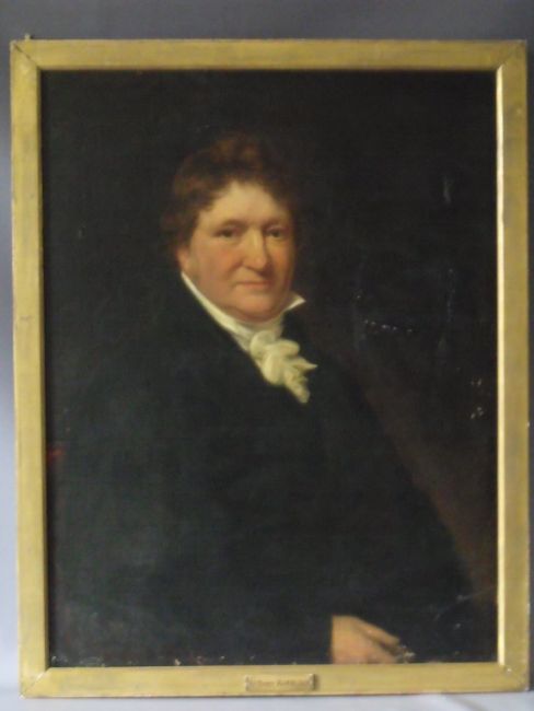 CIRCLE OF SIR HENRY RAEBURN (1756-1823). Portrait study of a gentleman with white stock and black jacket, oil on canvas, unsigned, framed in gold slip, 89 x 67 cm