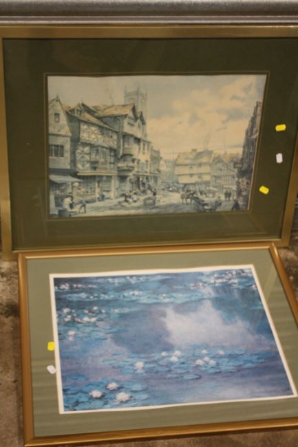 A COLLECTION OF PICTURES AND PRINTS TO INCLUDE AN ABSTRACT PAINTING OF A TREE, CRICKET INTEREST PRINT ETC (7)