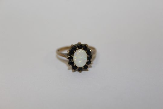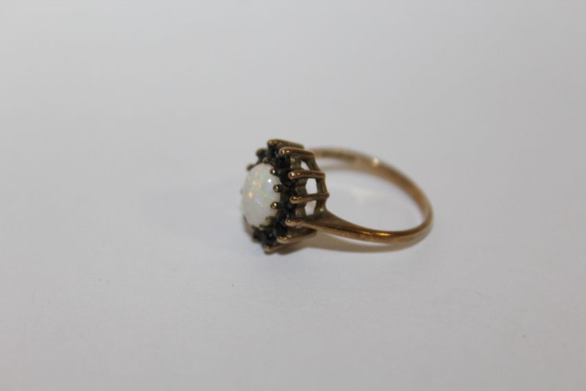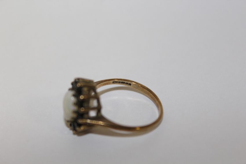 A HALLMARKED 9 CARAT GOLD OPAL SET DRESS RING APPROX WEIGHT - 2.5G