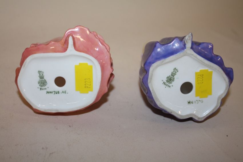 FIVE SMALL ROYAL DOULTON FIGURES CONSISTING OF ROSE HN1368, MARIE HN 1370, DINKY DO HN 1678, JULIE HN 2995 AND PENNY HN 2338