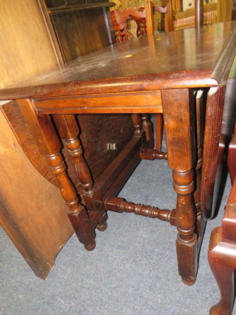 AN OAK DROPLEAF TABLE AND 4 EARLY 20TH CENTURY CHAIRS