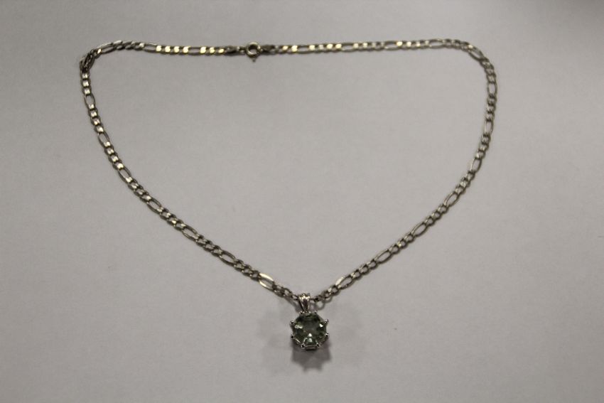 A GEM SET SILVER PENDANT ON SILVER CHAIN APPROX WEIGHT - 11.2G