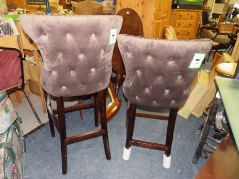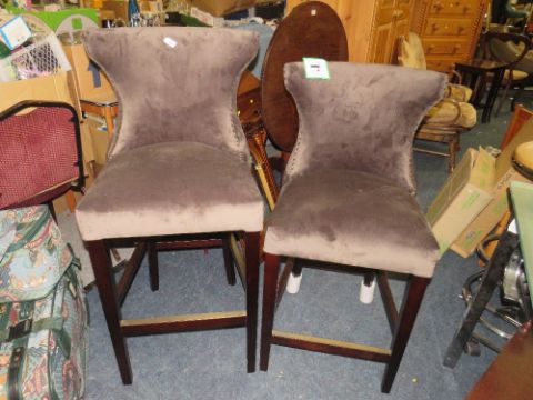 A NEAR PAIR OF MODERN UPHOLSTERED BAR STOOLS