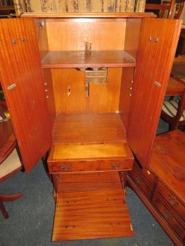 A YEW WOOD HI-FI CABINET AND A LOW TELEVISION CABINET (2)