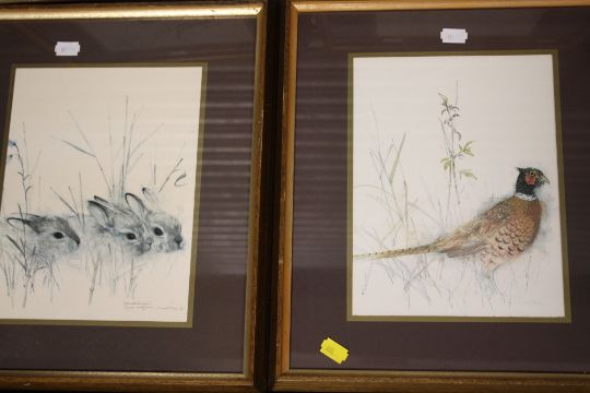 A QUANTITY OF PICTURES AND PRINTS TO INCLUDE A SET OF FOUR ANIMAL PRINTS, SIGNED LIMITED EDITION GOLF INTEREST PRINT BY HUGH BRYNING, NEEDLEWORK ETC (14)
