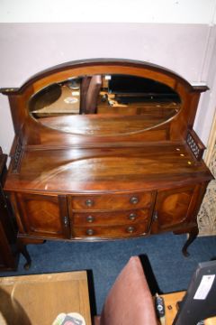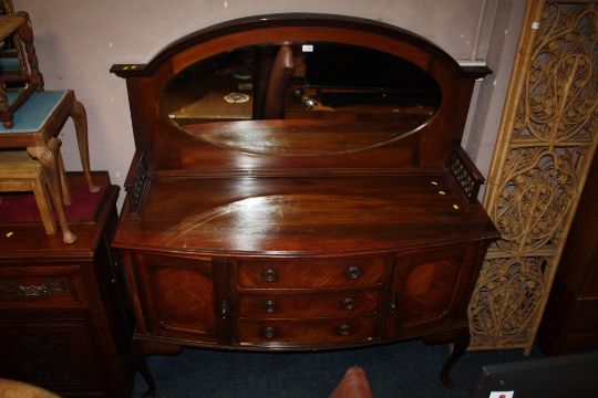 AN EARLY 20TH CENTURY MAHOGANY MIRRORED BOW FRONTED SIDEBOARD W-155 CM