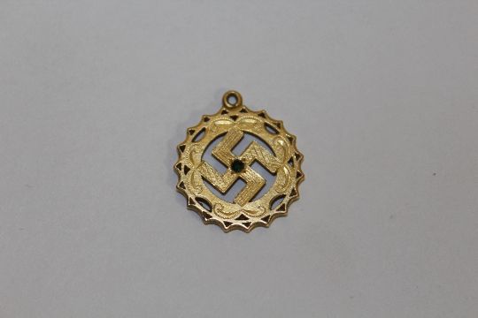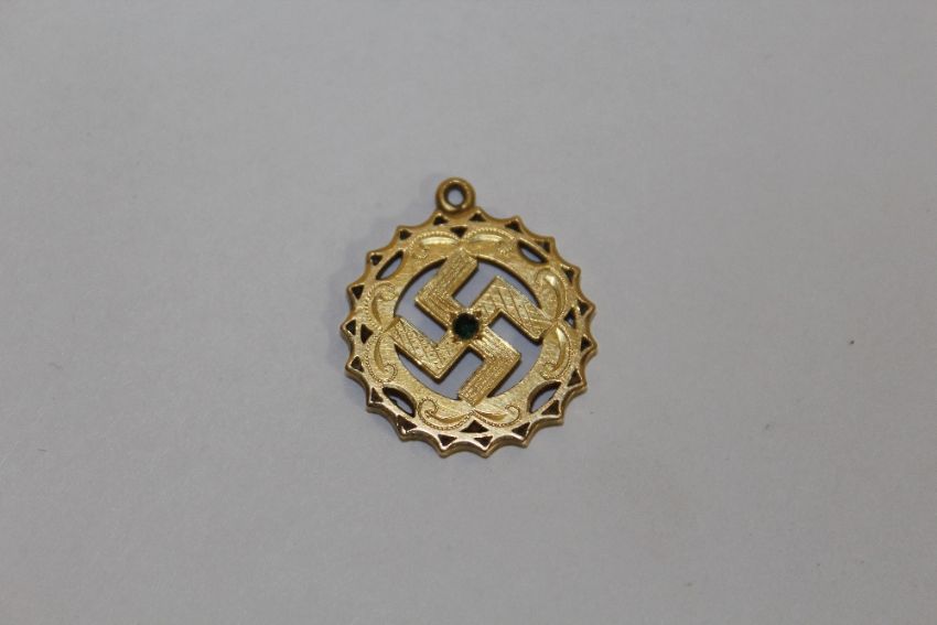 A YELLOW METAL SWASTIKA PENDANT STAMPED 22C APPROX WEIGHT - 4.8G
