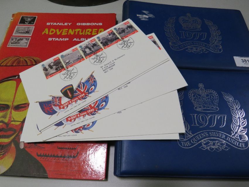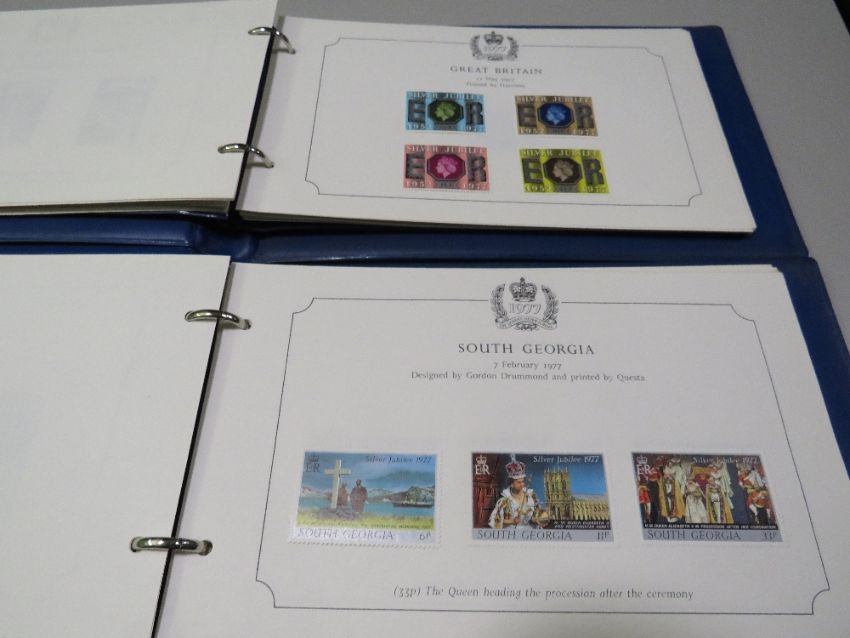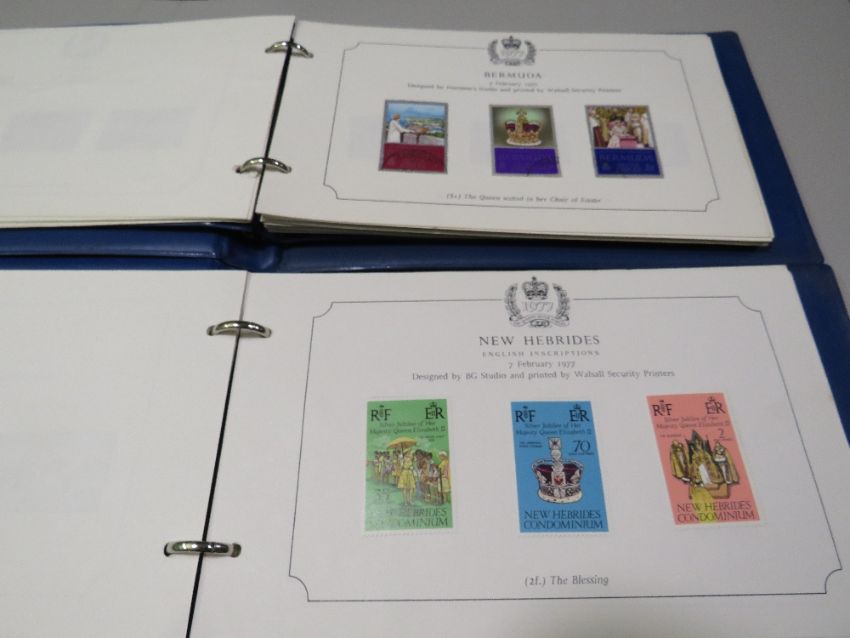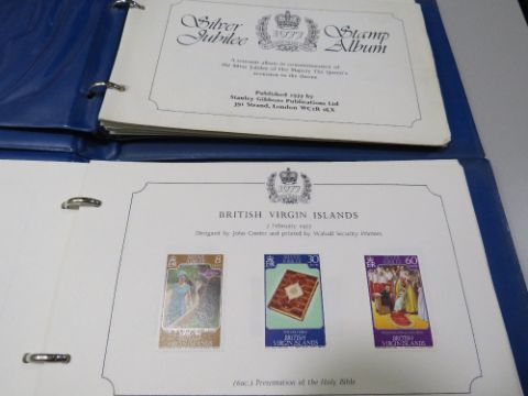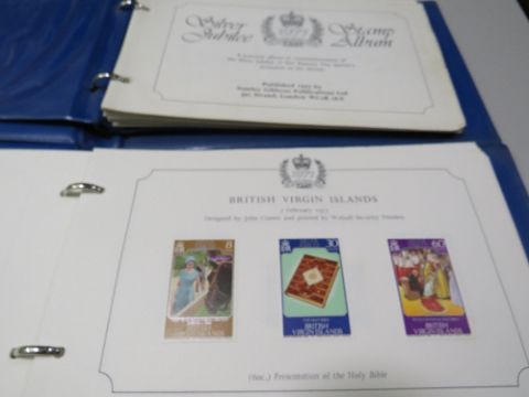 TWO 1977 QUEENS SILVER JUBILEE STAMP ALBUMS AND CONTENTS TOGETHER WITH A STANLEY GIBBONS WORLD STAMP ALBUM AND CONTENTS (3)