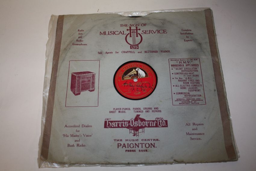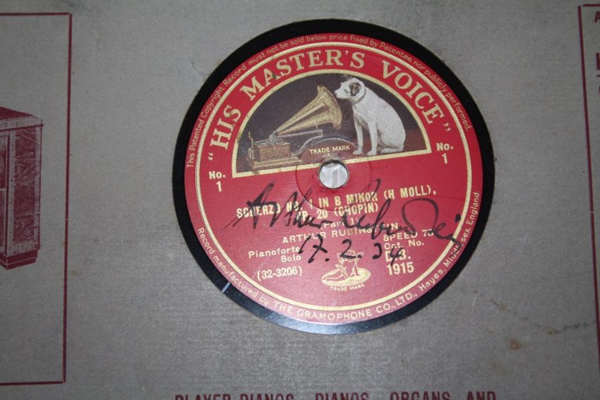 A SIGNED ARTHUR RUBINSTEIN 78 RPM RECORD DATED 17TH FEBRUARY '34
