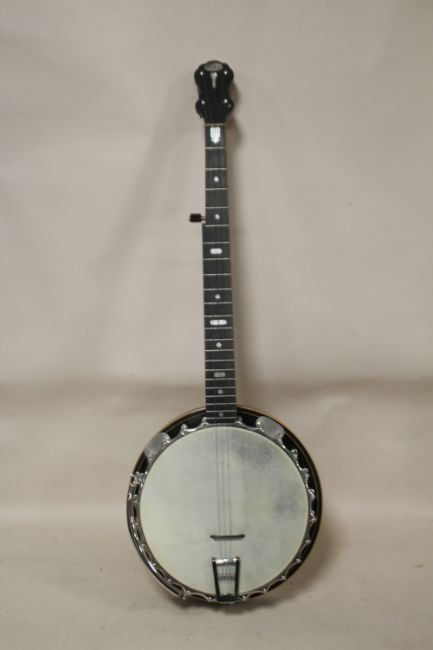A CASED VINTAGE NEW ERA BANJO WITH MOTHER OF PEARL INLAY