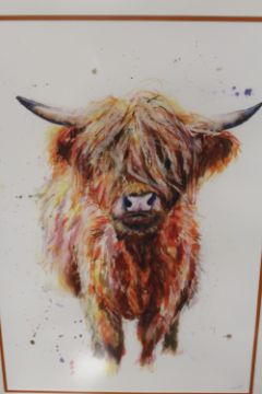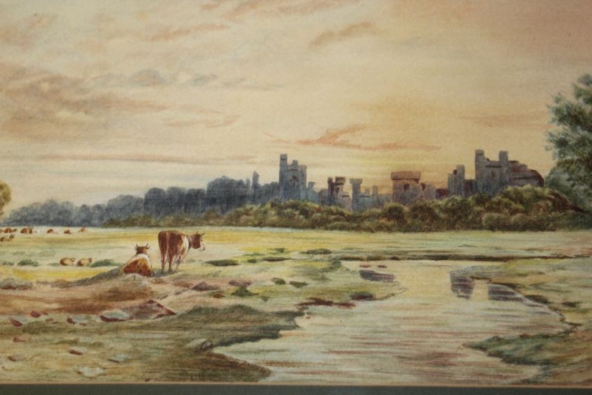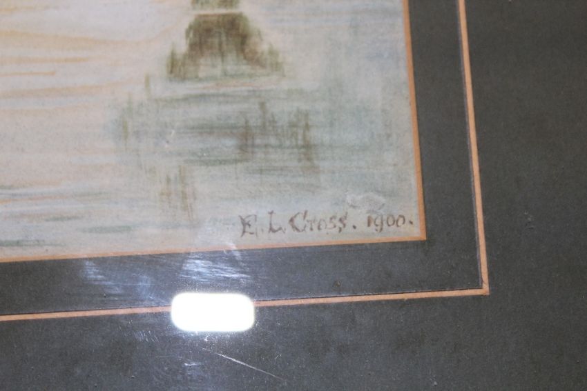 A PAIR OF FRAMED AND GLAZED WATERCOLOURS SIGNED E.L. CROSS 1900, TOGETHER WITH A PAIR OF SIGNED HELEN APRIL PRINTS WITH CERTIFICATES OF AUTHENTICITY TO REVERSE ENTITLED BEAUTIFUL OTTER 441 AND HAMISH HIGHLAND COW 531 (4)