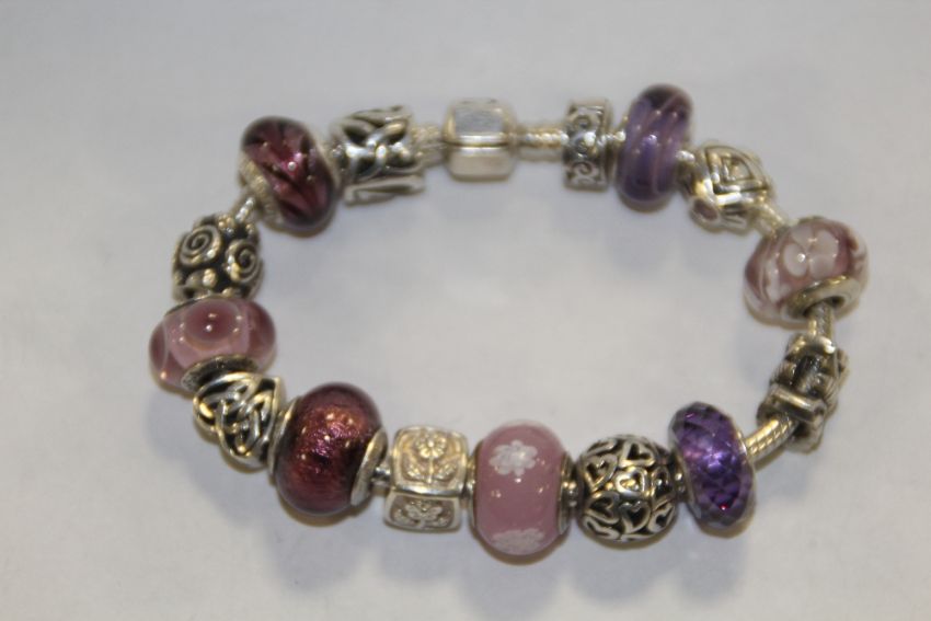 A MODERN STERLING SILVER CHARM BRACELET WITH ASSORTED CHARMS APPROX WEIGHT - 57.6G