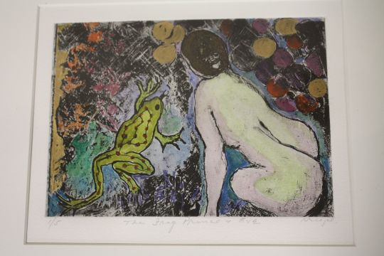 TWO MODERN FRAMED AND GLAZED ABSTRACT LIMITED EDITION PICTURES ENTITLED 'BIRDY' 1/5 AND 'THE FROG PRINCE AND EVE' 1/5 BOTH SIGNED LOWER RIGHT IN PENCIL