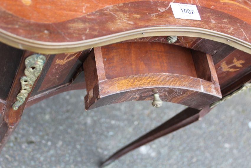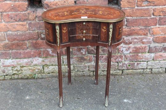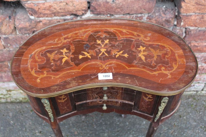 A FRENCH STYLE INLAID KIDNEY SHAPED OCCASIONAL STAND H-69 W-55 CM
