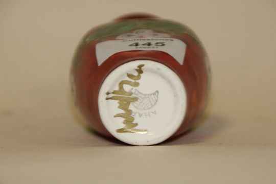 A SMALL SIGNED ANITA HARRIS ART POTTERY BERRY PATTERN VASE, H 12 CM