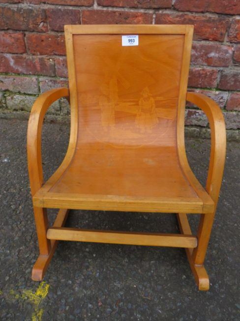 A SMALL DUTCH SCENE BENTWOOD CHILDS ROCKING CHAIR