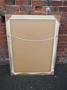A LARGE MODERN GILT FRAMED MIRROR 115 X 90 CM