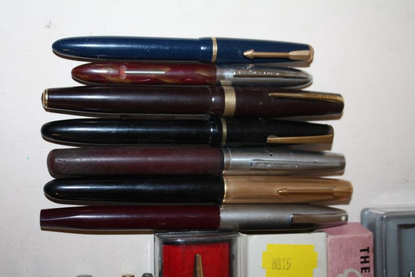 A COLLECTION OF VINTAGE FOUNTAIN PENS AND BALL POINT PENS TO INCLUDE PARKER, SUMMIT, PLATINUM ETC.