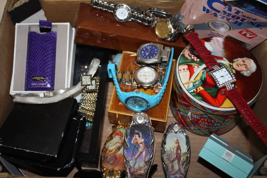 A COLLECTION OF COSTUME JEWELLERY AND WRISTWATCHES ETC.