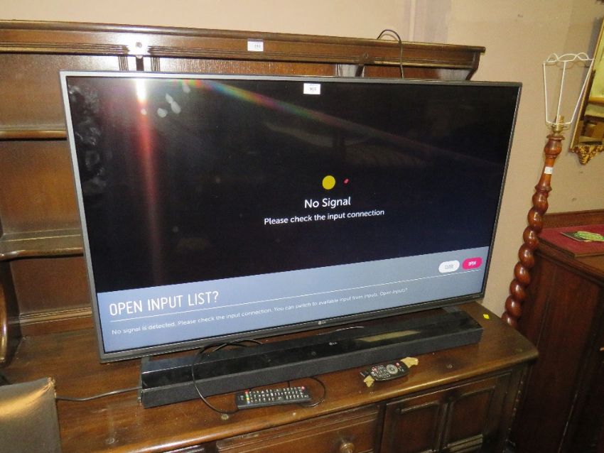 AN LG 48" FLATSCREEN TV WITH SOUND BAR - REMOTE - HOUSE CLEARANCE