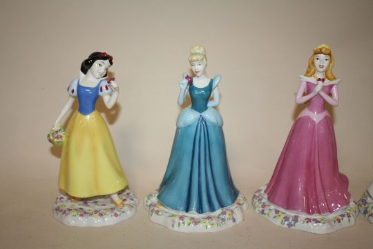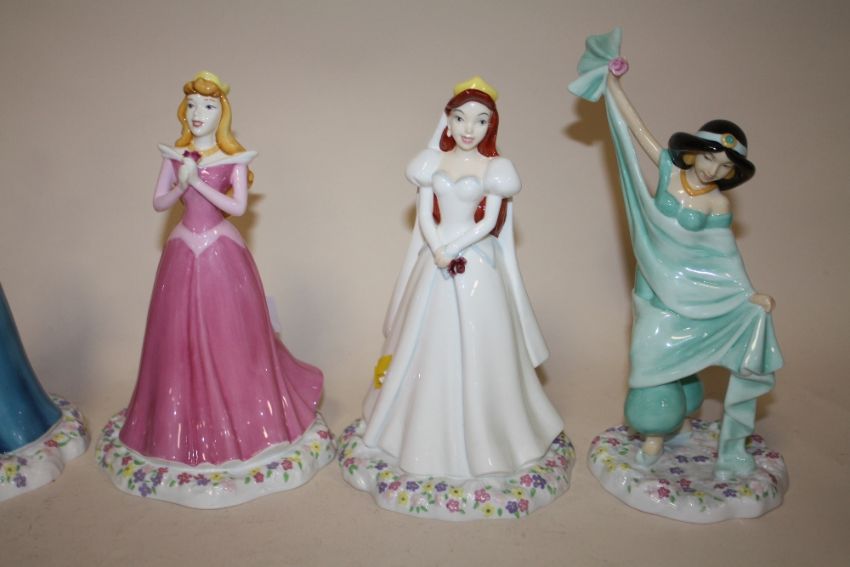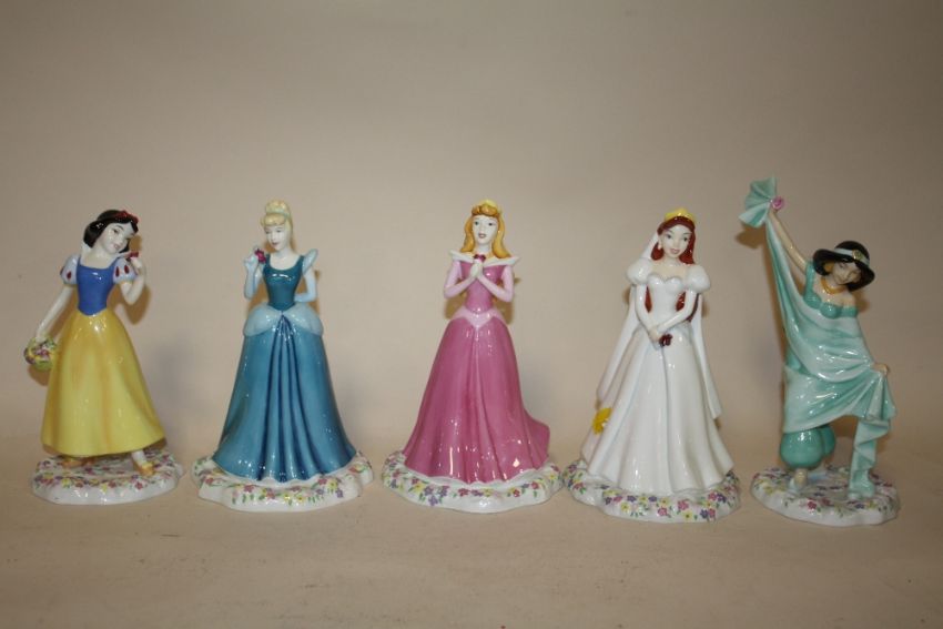 FIVE ROYAL DOULTON DISNEY SHOWCASE COLLECTION FIGURES COMPRISING OF SNOW WHITE, SLEEPING BEAUTY, PRINCESS JASMINE, CINDERELLA, ARIEL