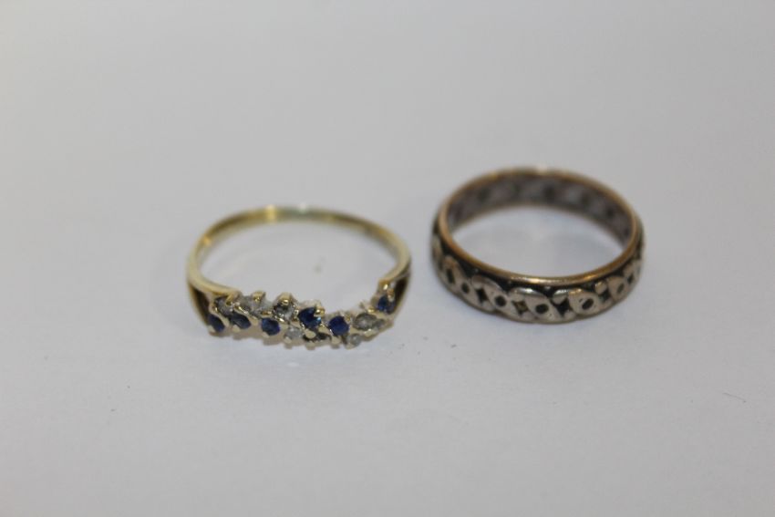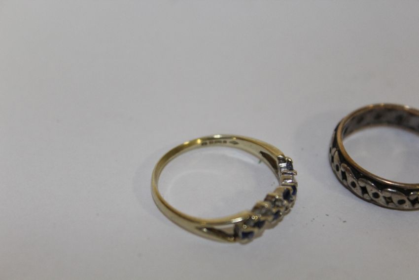 A HALLMARKED 9 CARAT GOLD GEM SET DRESS RING, TOGETHER WITH AN ETERNITY RING A/F APPROX WEIGHT - 4.6G