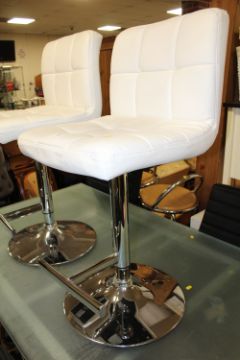 A PAIR OF MODERN WHITE / CHROME BAR STOOLS