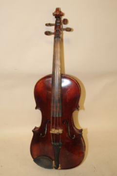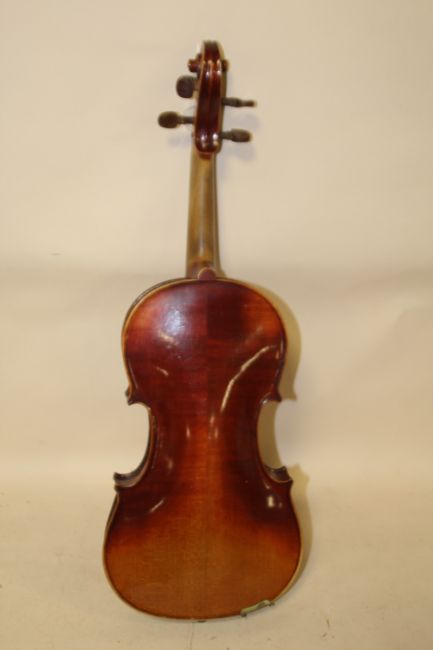 A CASED VINTAGE VIOLIN WITH TWO PIECE BACK, AND BOW, A/F, VIOLIN LENGTH 59 CM