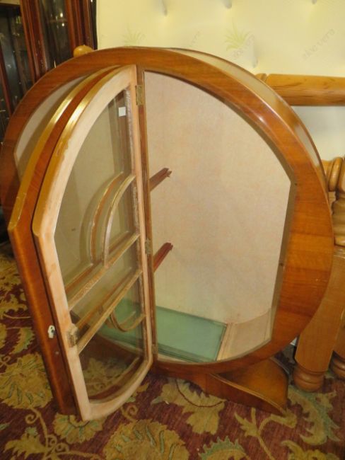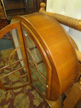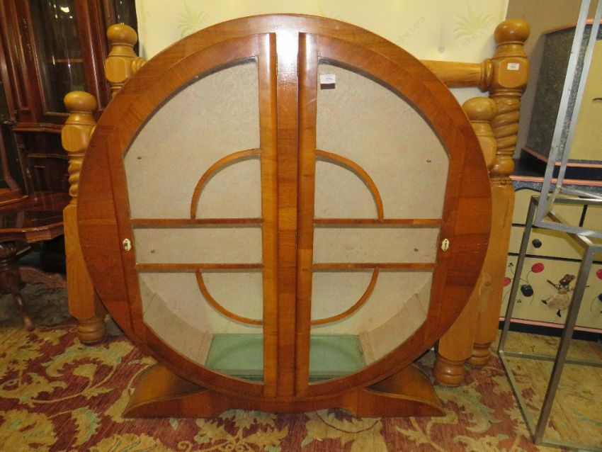 A VINTAGE DECO WALNUT CIRCULAR CHINA CABINET H-131 W-122 CM